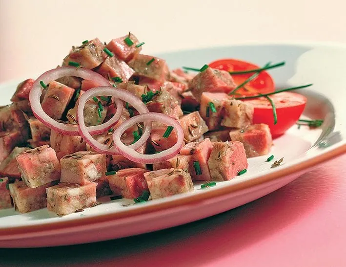 Sülze oder Sulz kommt von althochdeutsch „sulza“, das heißt „Salzwasser“. Wie der Name schon andeutet, ist die Sülze ein Gericht, das transparent ist. Man sieht sofort, was drin ist. Um Sülzen in 1-a-Qualität abzuliefern, produziert Rack & Rüther, Fuldabrück, laut Unternehmensangaben in der Tradition des guten, alten Metzgerhandwerks. Bei der Herstellung wird bestes Fleisch vom Schwein verwendet. Auf Aspik wird bewusst verzichtet, denn Schweinekopffleisch und Brühe sorgen für die notwendige Bindung. Und es geht auch ganz ohne Weinessig, so der Hersteller.