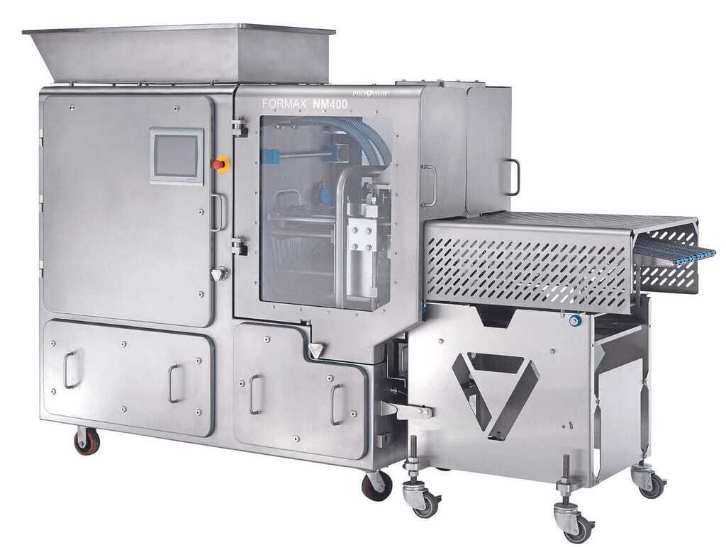 Provisur Technologies, Flawil/Schweiz, hat Neuheiten in den Geschäftsbereichen Further Processing, DMC (Defrosting, Marinating, Cooking), Slicing und Separation. Im Segment Further Processing zeigt der Formax NovaMax 400 das Formen von Burgerfleisch. Die Maschine mit hydraulischem Formplattenantrieb steht laut Hersteller für einen hohen Durchsatz, präzise Gewichtskontrolle, einfache Produktwechsel und niedrige Betriebskosten. Auch der Formax VerTex 600 Former mit Drehtrommel für Verarbeitungslinien mit hoher Kapazität liefert eine gleichbleibende Portionierung.