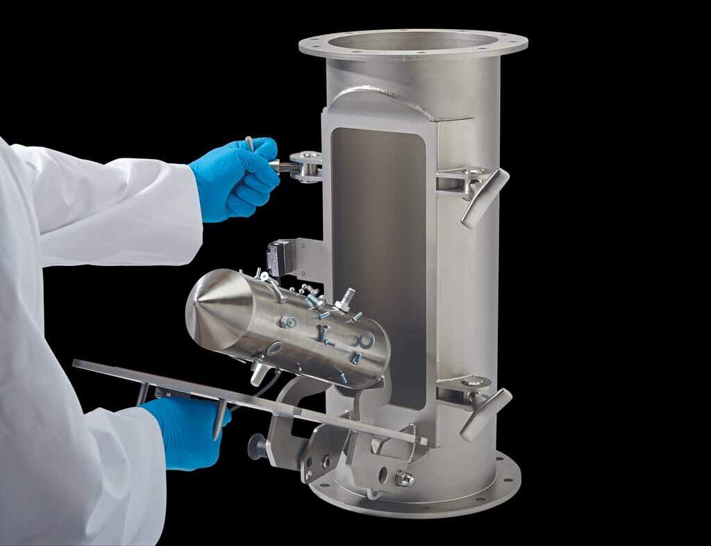 Der 12.000-Gauss-Rohrmagnet wurde als Antwort auf spezifische Anforderungen entwickelt. Die erste Anforderung bestand darin, einen Rohrmagneten mit einer geringen Einbauhöhe zu entwickeln, der sich leicht in bestehende Prozesse integrieren lässt. Zusammen mit der hohen Flussdichte bedeutet dies, dass der Magnet bereits am Wareneingang eingesetzt werden kann. Ein weiterer Vorteil ist, dass der Rohrmagnet neben den großen Metallpartikeln auch kleinere Partikel erfasst und so die Produktqualität verbessert. Der Rohrmagnet kann optional mit verschiedenen Flanschen (DIN, Jacob) ausgestattet werden.