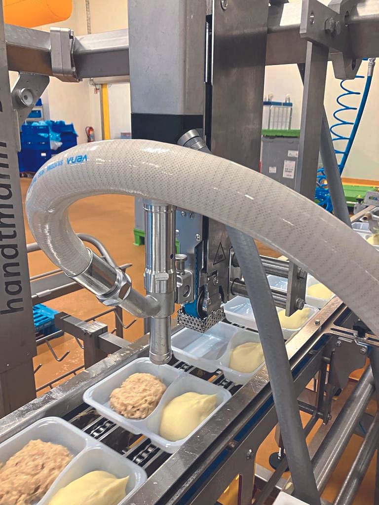 Zu sehen sind beispielsweise Füll-, Wolf- und Formprozesse oder das exakte Portionieren von Teigen und Massen bis hin zum Füllen von Dosen und Bechern. Die realisierten Lösungen sind problemlos in Produktionslinien integrierbar.
