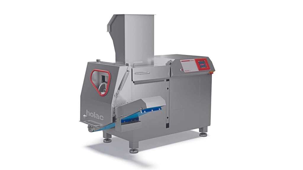 Holac, Nattheim, zeigt auf der Anuga FoodTec 2024 die Vielzweckschneider der Baureihen Cubixx, Maxx und den CS 28. Die Würfel- und Streifenschneider sorgen für gleichmäßige Würfel, Plättchen und Streifen. Zur Ausstattung gehören: Hydraulische, druckabhängige Vorpressung, die Verwendung von Mehrfachmessern und Messerscheiben zur Kapazitätssteigerung, stufenlos einstellbarer Vorschub sowie Gatterstege und gehärtete Messerleisten für gute Schnitt-Ergebnisse.