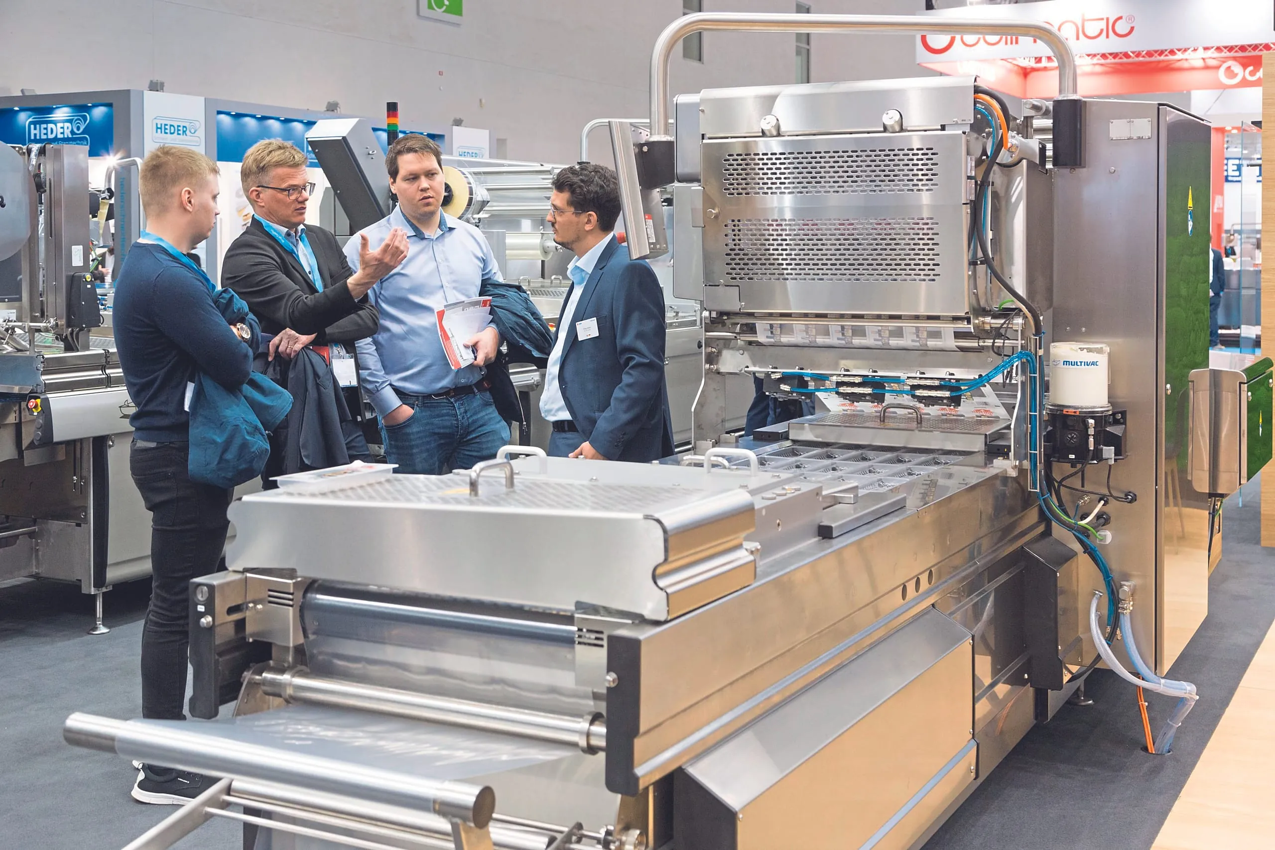 Für das Portionieren und Verpacken von Frischfleisch wird eine Tiefziehverpackungslinie ausgestellt, die laut Mulitvac Flexibilität, ein geringes Give Away und geringe Verpackungskosten bietet. Herzstück der Linie ist eine neue Portioniermaschine von TVI. Für das Verpacken kommt die Tiefziehverpackungsmaschine R3 zum Einsatz, die auch umweltschonende, recyclingfähige Monomaterialien verarbeiten kann und die sich dank ihrer Modulbauweise individuell auslegen lässt. Zudem ist die Linie mit einem neuen Querbahnetikettierer ausgestattet.