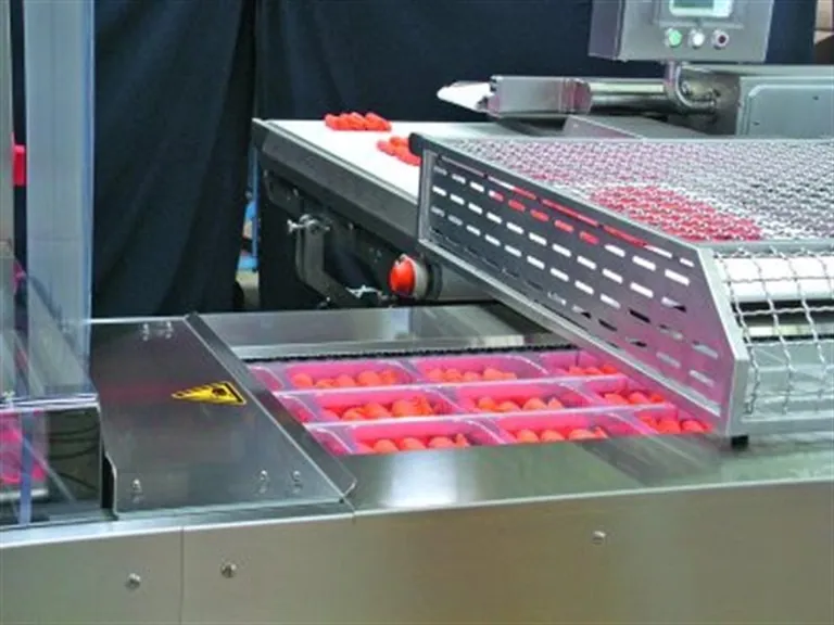 One special feature of the thermoformers is their patented upper film attaching station, which enables efficient film use both for printed and unprinted upper films. This results in less film use when starting film rolls as well as during film changes. This prevents the sealing plates from contamination as well as the resulting sealing problems. Variovac’s upper film attaching station is provided as standard equipment at no extra charge for nearly all of its thermoformers.