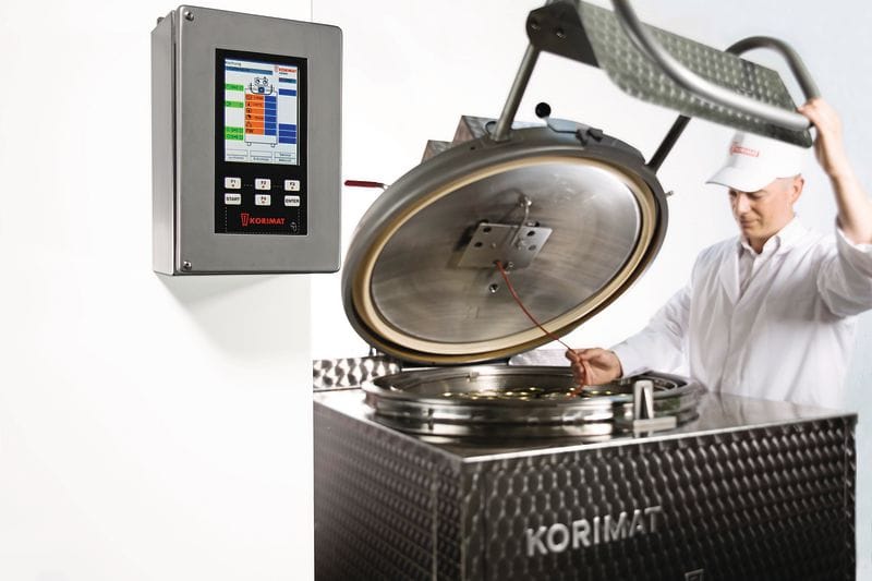 Die regulierte Drucksteuerung ermöglicht – über die herkömmlichen Dosen und Gläser hinaus –die Verarbeitung von Weichpackungen, Convenience-Produkten, Hartschalen und Tuben. Dabei kann der Anwender auf eine Vielzahl von installierten Kochprogrammen zugreifen oder sich individuell sein eigenes Verfahren wählen. Jeder Kochvorgang wird protokolliert und per Speicherkarte kontaktlos ausgelesen. Mittels einer von Korimat entwickelten Software lassen sich die Daten auswerten und zur Qualitätskontrolle sowie zur weiteren Produktentwicklung speichern.