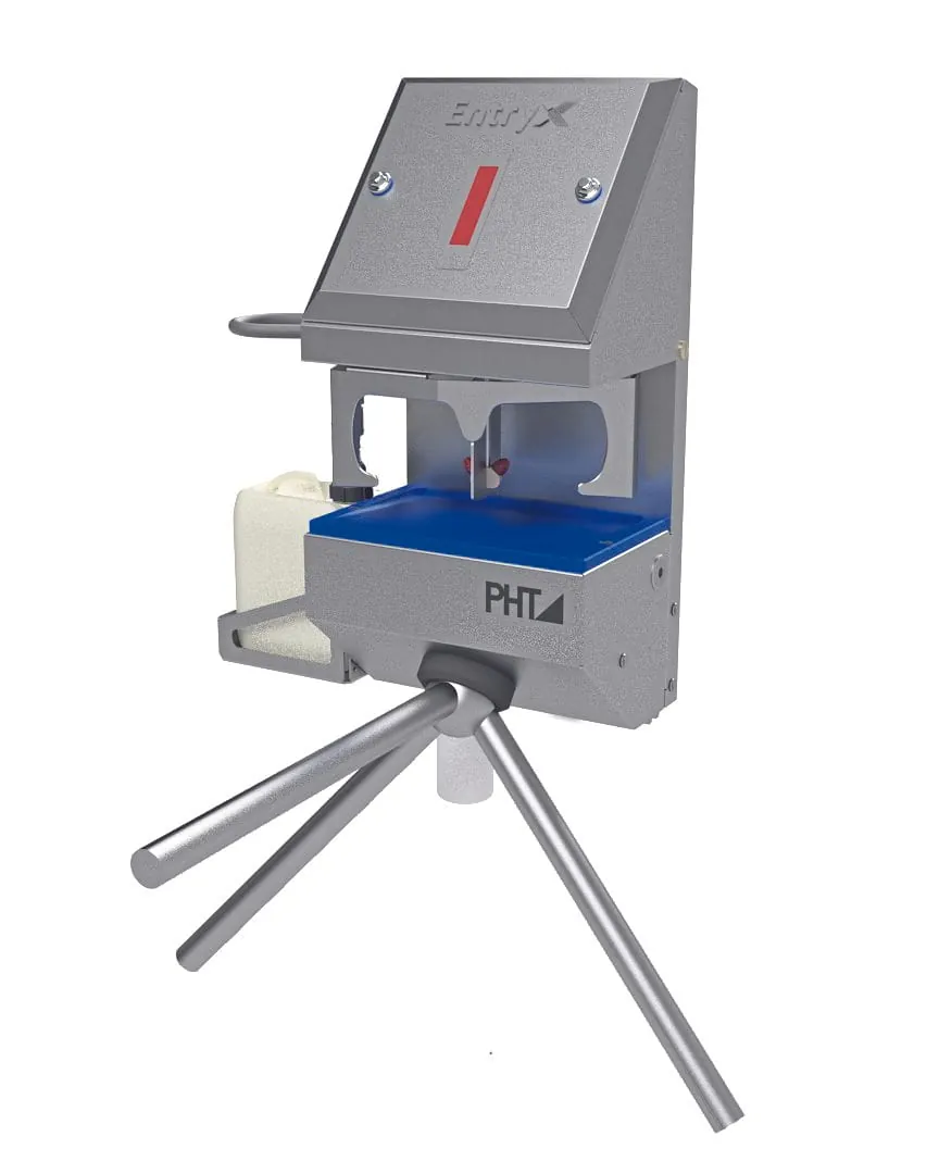 PHT bringt mehr als 27 Jahre Erfahrung in der Hygienetechnik ein und bietet integrierte Konzepte, die von der Personalhygiene bis zur Produktionsreinigung reichen. Mit der Eigenmarke InnovationX entwickelt das Unternehmen praxisnahe Hygienetechnik, darunter Zutrittskontrollen (EntryX), Handwaschstationen (WashX) und Sohlenreinigung (HeliX). Die Eingangskontrolle EntryX mit Seifen- oder Desinfektionsmittelausgabe sorgt für maximale Sicherheit mit Details wie manipulationssichere Positionierung der Düsen. Eine individuell einstellbare Eingriff-Positionierung sorgt zusätzlich für ergonomisches Handling. Wie bei allen InnovationX Anlagen wird auch hier Servicefreundlichkeit großgeschrieben.