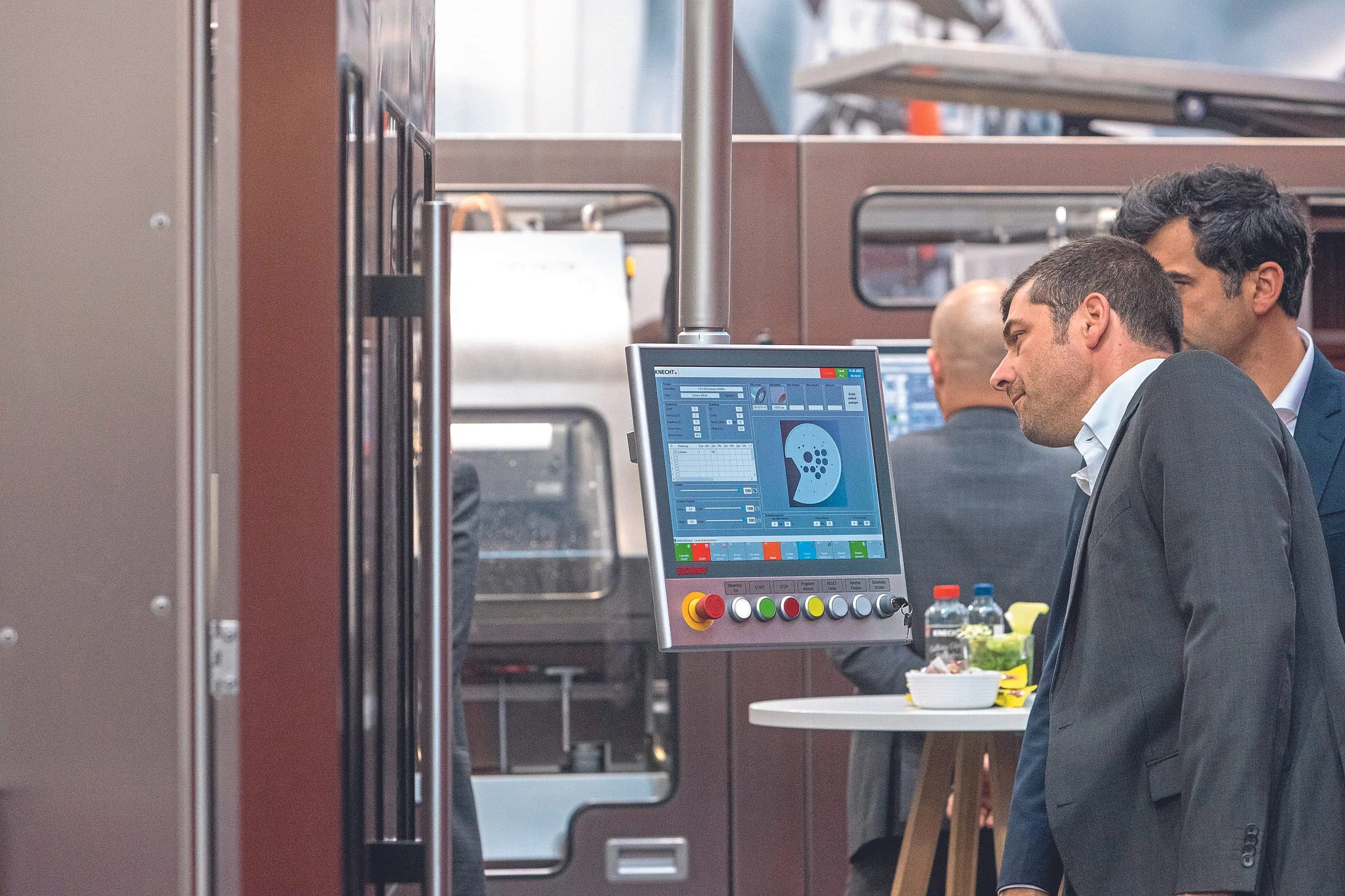 Für eine einfache und sichere Bedienung setzt Multivac auf einheitliche, intuitive Benutzeroberflächen. Mit der Multivac Line Control können Bedienlaufwege in einer Produktionslinie um bis zu 80 Prozent reduziert werden.