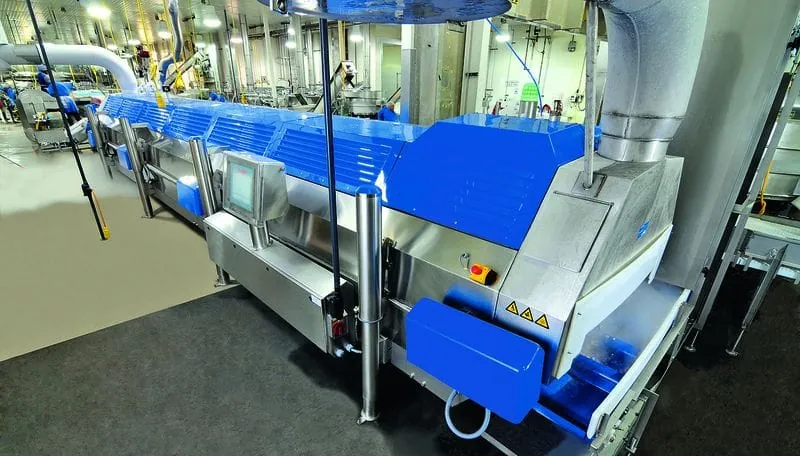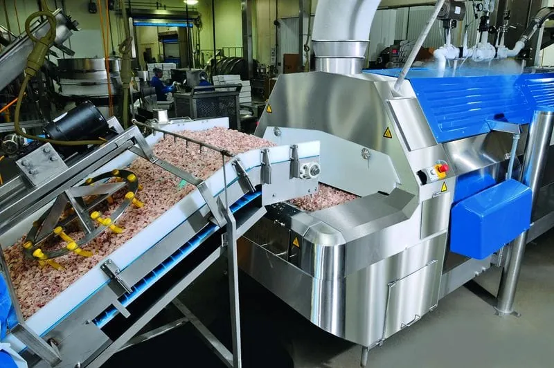 Thousands of kilograms of poultry meat per hour are fed into the Cryoline CW tunnel ­freezer with wave technology.