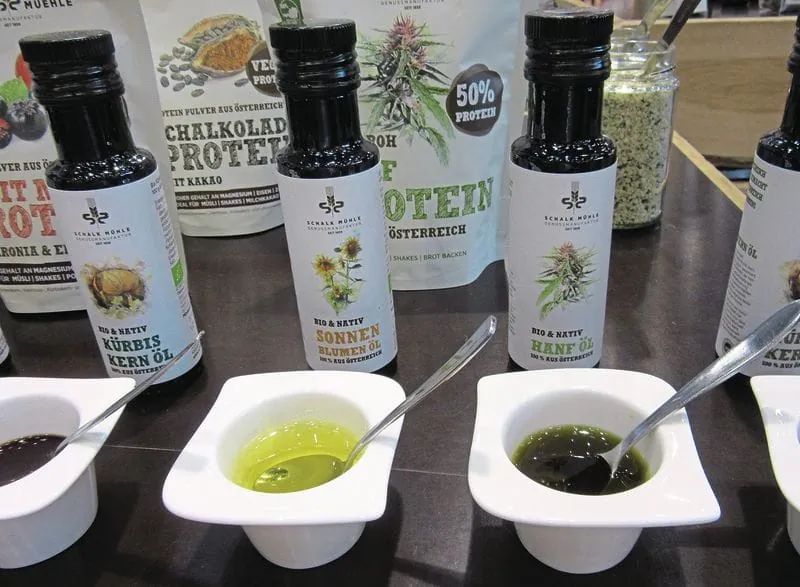 Als Nebenprodukt bei der Herstellung von Bio-Pflanzenölen fällt hochwertiger Presskuchen an. Fettarm, aber reich an Ballaststoffen, Mikronährstoffen und Protein lässt er sich nach dem Trocknen zu Proteinpulver vermahlen. Das nutzt auch die Schalk Mühle aus dem österreichischen Ilz in der Steiermark. Ein Familienunternehmen seit 1859, das in sechster Generation Öl, Pesto, Mus, Senf und viele andere Lebensmittel in traditionellen Verfahren produziert. 2015 stellte die Genussmanufaktur auf Bio um. Ihre Rohstoffe bezieht sie von rund 200 Vertragsbauern aus ganz Österreich.