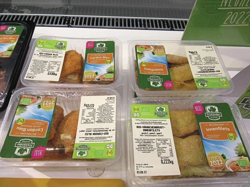 2021 setzten rund 52.000 Bio-Betriebe 15,87 Mrd. Euro mit Bio-Lebensmitteln und -Getränken um. Ein Plus von 5,8 Prozent gegenüber dem Vorjahr, berichtet der Bund Ökologische Lebensmittelwirtschaft (BÖLW) in seinem Branchenreport 2022. Verbraucher kauften 2021 rund 20 Prozent mehr Bio-Schweine- und Rindfleisch und 10 Prozent mehr Geflügel als im Vorjahr. Begrenzender Faktor war das geringe Angebot. Weil die Nachfrage mit einheimischem Fleisch nicht gedeckt werden konnte, wurden Schweine- und Rindfleisch aus Nachbarländern importiert, heißt es im Branchenreport. Demnach prägen sich beide Ernährungsstile, besseres Fleisch und vegan/vegetarisch immer stärker aus. Zahlen des BÖLW zufolge kauften Verbraucher das meiste Bio-Fleisch bei Direktvermarktern. Weit abgeschlagen auf dem zweiten Platz lagen Fleischereien, gefolgt von Discountern und Vollsortimentern. Ob der Trend zum Biofleisch anhalten wird, bleibt abzuwarten. Mit dem Krieg in der Ukraine sei der Umsatz eingebrochen, berichteten viele Aussteller.