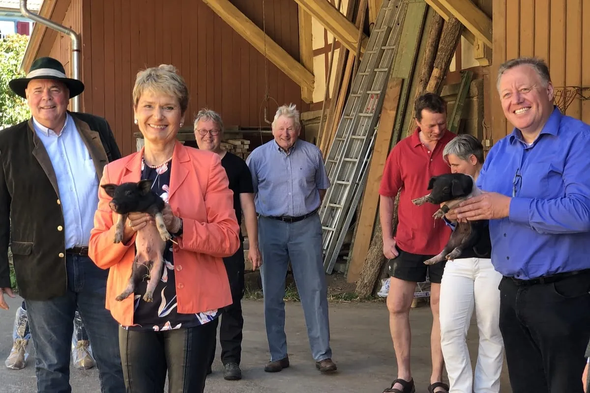 Nun ist der Anteil von Bio-Schweinefleisch am gesamten deutschen Schweinemarkt derzeit noch verschwindend gering: „Leider gerade mal 1,5 Prozent“, macht Gurr-Hirsch deutlich. Hier setze sie auf Bio in der Gemeinschaftsverpflegung und habe da schon einiges erreicht. „Wichtig ist, Lieferketten aufzubauen“, sagt die Staatssekretärin, „in Hohenlohe ist der Geist da.“ Dazu trage auch die Bio-Musterregion Hohenlohe bei, die beispielsweise eine Bio-Projektwoche für landwirtschaftliche Berufsschüler initiiert hat. Da nickt Almut Rau zustimmend. Dietmar Lobers Partnerin ist Fachlehrerin für Landwirtschaft und von der ökologischen Wirtschaftsweise auf dem Betrieb überzeugt.