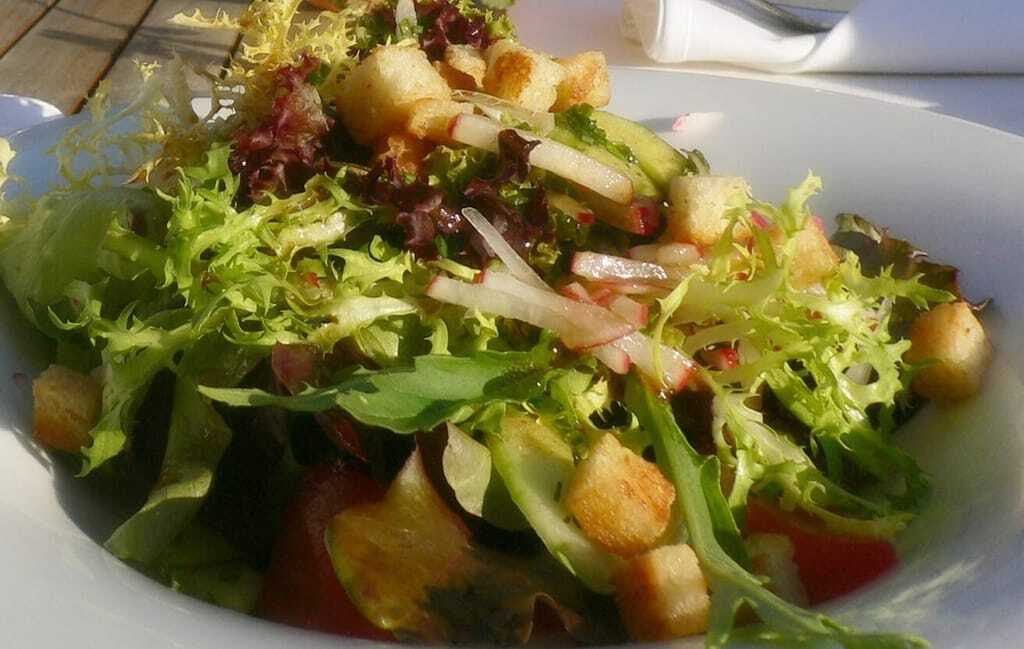 Caesar Salad wird oft mit gebratenem Hähnchenbruststreifen als Hauptmahlzeit serviert, aber schmeckt auch als Beilage etwa zu Gegrilltem. www.pixelio.de - © Martina Gade, PIXELIO