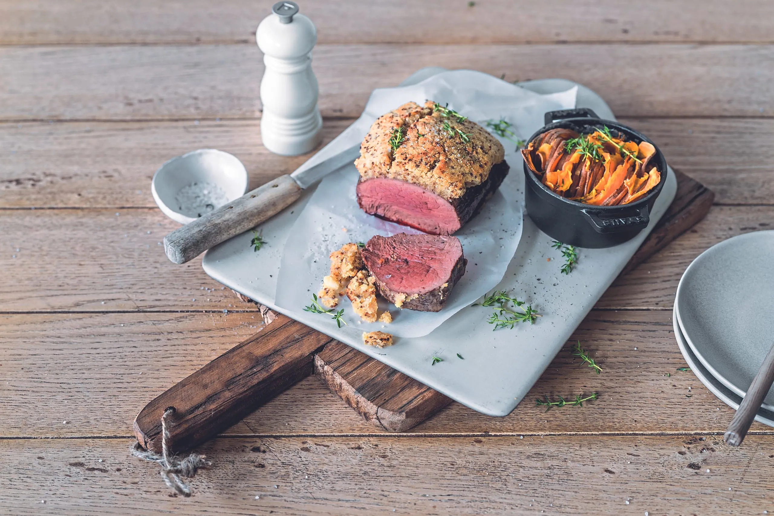 Ein weiteres Beispiel sind die zahlreichen Steakzuschnitte, die auch auf deutschen Festtagstischen für Abwechslung sorgen können, wie etwa großes und kleines Bavette, Flanksteaks, Nierenzapfen oder der Klassiker der französischen Steakkultur, das gut ein Kilo schwere Côte de Bœuf.