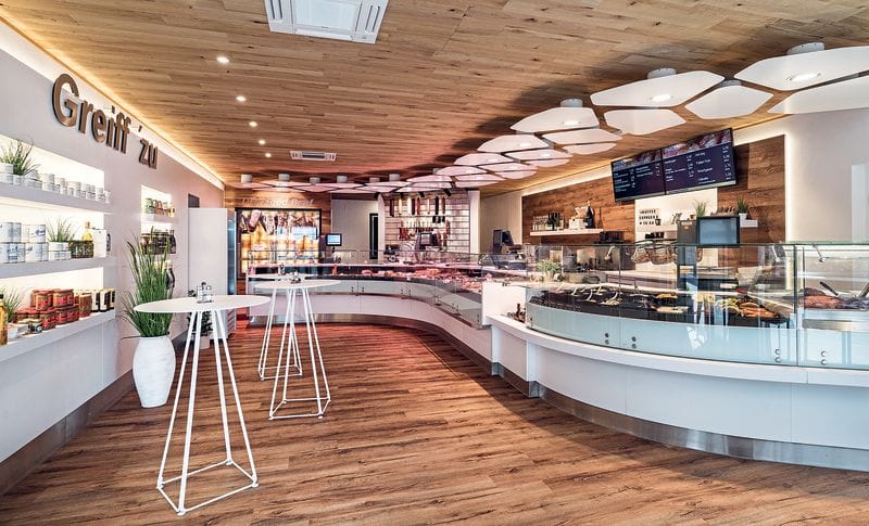 „Greif zu Greiff!“ lautet das Motto der Metzgerei Greiff aus Memmingen. Zugegriffen hat Metzgermeister Georg Greiff beim Ladenbau. Und mutig war es allemal, in einem denkmalgeschützten Gebäude ein Umbauprojekt in solch einer Dimension zu starten. Manchmal wird Mut aber auch belohnt, wie das harmonische Zusammenspiel aus einem Entwurf von Raumkonzepte Wettemann und der baulichen Umsetzung von Schrutka-Peukert Ladenbau, Kulmbach, am Hauptgeschäft von Georg Greiff in Memmingen zeigt.