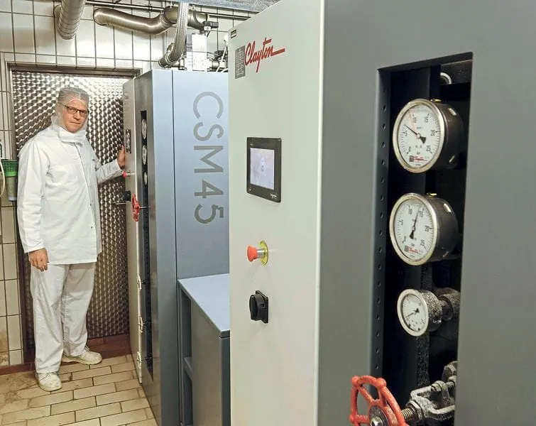Schon seit über 40 Jahren wird in der Produktion der Metzgerei Edwin Grasmehr mit heißem Dampf geheizt. Nach Ausfall des alten Kessels rüstete der Betrieb um auf eine neue Generation Schnelldampferzeuger aus dem Hause Clayton.