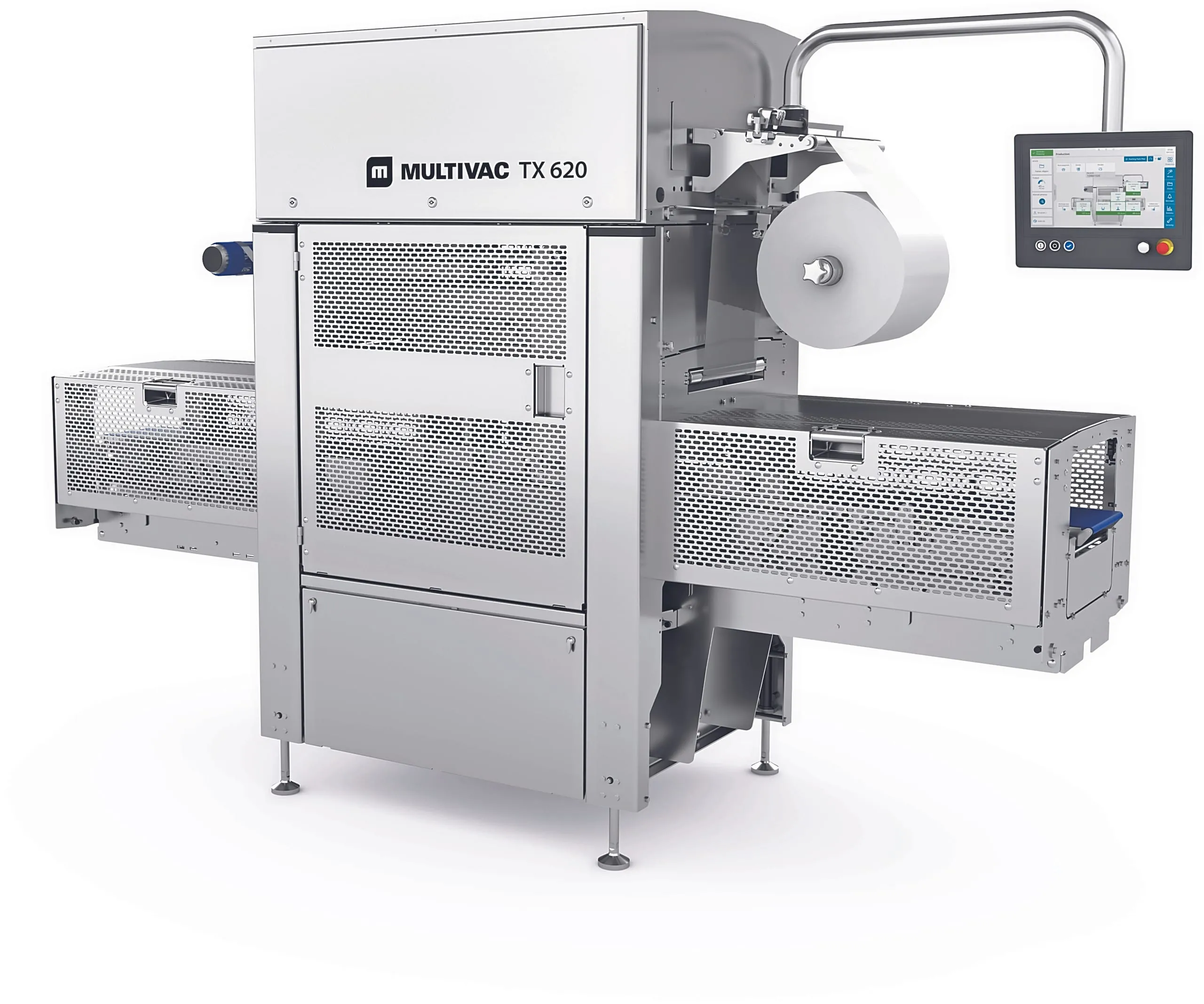 Ausgestattet sind beide Modelle mit Servoantrieben, die hohe Geschwindigkeiten und ein schonendes Produkthandling gewährleisten. Die Maschinensteuerung und das Werkzeugkonzept, die sogenannten X-tools, stehen dabei für eine zukunftssichere Investition. Insbesondere deshalb, weil der TX 610 und der TX 620 für die Nutzung der Multivac Smart Services und der Line Control ausgelegt sind. Beide Modelle unterscheiden sich im Wesentlichen in der Maschinenlänge und der nutzbaren Größe des Werkzeugs.