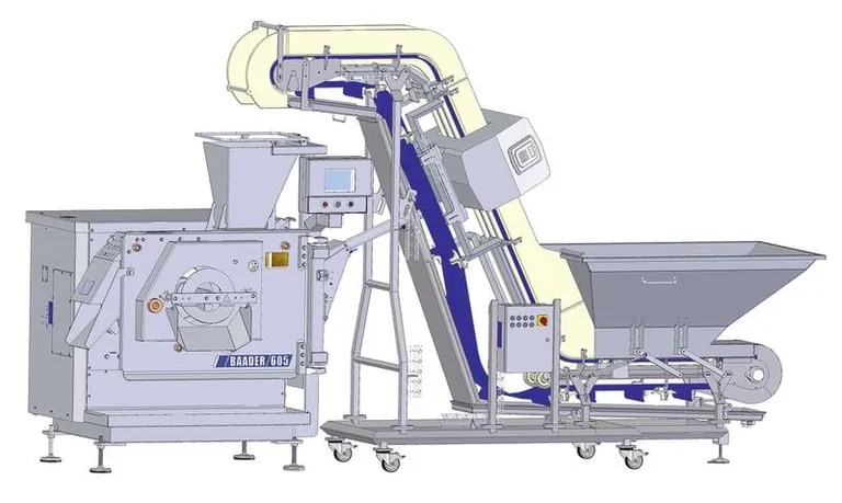 The exhibited products will also include its updated Baader 601 line. These machines are now equipped with a tamping device that makes it possible to process large pieces without mechanical pre-cutting. By using this device, one work step can be saved and a higher product quality can be obtained. This machine also comes with a jam and dry-run sensor.