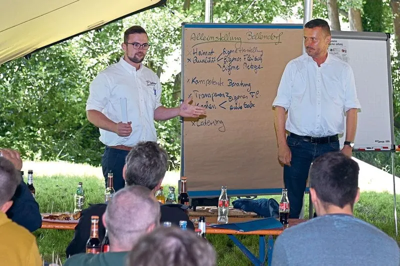 Dass die Bellendorf-Wahrheit mindestens so schön ist, wie das Imagevideo oder der Werbeflyer, das erlebten nach dem Start der neuen Fleischqualität in der Theke zunächst die Mitarbeiter. An einem Sonntagmorgen starteten Planwagen mit allen 35 Verkaufskräften, Metzgern und Köchen zu den Schweineställen und der Weide. Die Aufgabe der Mitarbeiter: Mit eigenem Erkunden und Fragen auf den Bauernhöfen herausfinden: „Was ist das Einzigartige an unserer Fleischqualität?“ Die Metzger und Verkäuferinnen fanden dabei noch viel mehr Argumente, als bisher in der Bellendorf-Werbung verwendet werden. Im Rahmen eines Seminars wurden die Ergebnisse abgefragt und zum Schluss gab es eine große Fleischverkostung mit Bewertung von Zartheit und Aroma.