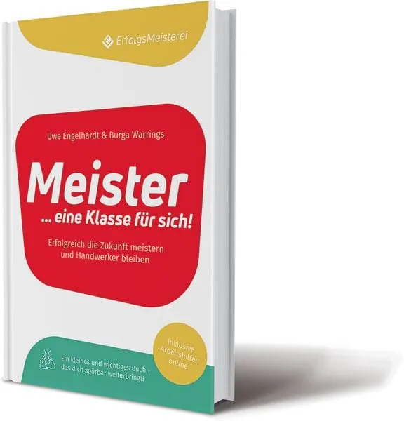 Jetzt ist „Meister … eine Klasse für sich“ der Erfolgsmeisterei-Inhaber erschienen: Dieses Lesebuch fasst Gedanken zum Meistertitel, zur Meisterpersönlichkeit und deren betrieblichem Tun zusammen. Die zentrale Botschaft: „Meister im Handwerk, mach dir bewusst, wieviel mehr Wert du lieferst.“