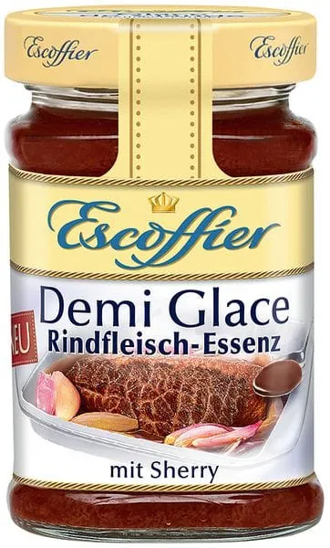 Die Demi Glace Braten-Essenz mit Rotwein (ein 90-ml-Glas ergibt 2,8 l Fond) ist ein Bratenfond, der ideal ist für Pfannengerichte wie Geschnetzeltes, in der Pfanne gezogene Saucen, zum Würzen von Pilzgerichten und für herzhafte Gerichte. Die Demi Glace Geflügelfleisch-Essenz mit Sherry (ein 90-ml-Glas ergibt 2,8 l Fond) ist ein Geflügelfond, der mit Sherry verfeinert wird, ideal für Geflügel-Geschnetzeltes, helle Saucen und zum Würzen von Eintopfgerichten. Die Demi Glace Rindfleisch-Essenz mit Sherry (ein 85-ml-Glas ergibt 2,7 l Fond) ist ein Rindfleischfond für die Zubereitung kräftiger, brauner Saucen sowie zum Verfeinern von Ragouts und Gulasch. Alle Varianten enthalten weder Geschmacksverstärker noch Konservierungsstoffe oder Verdickungsmittel, dafür ausschließlich rein natürliche Zutaten. www.escoffier.edu