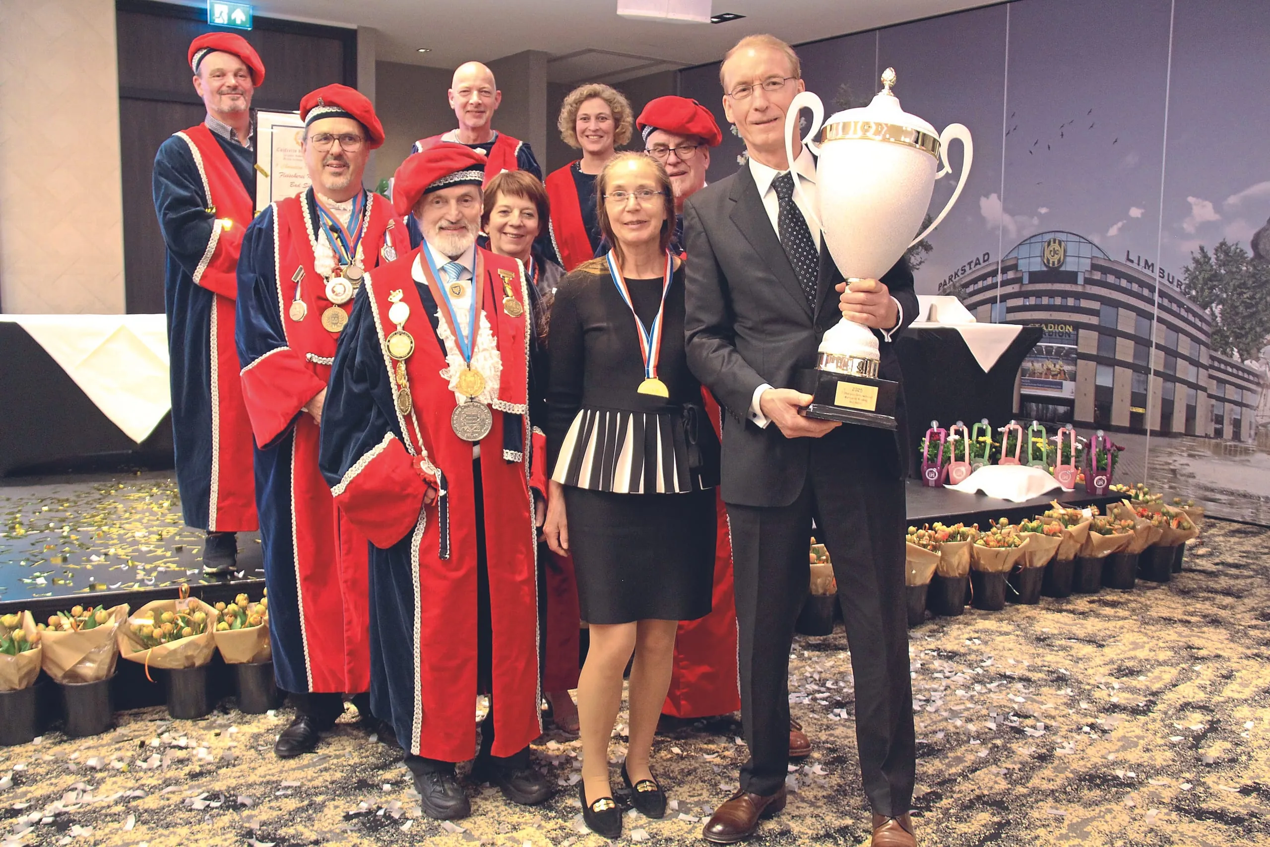 Metzger aus ganz Europa konnten zu dem Contest der Genuss-Bruderschaft Produkte in neun verschiedenen Kategorien einreichen. Die Bewertung nahm eine internationale Jury vor, zu der auch Georg Forster aus Feucht, Botschafter und Chevalier der Confrérie, gehörte. Pokale und Urkunden wurden bei einer festlichen Siegerehrung in Heerlen überreicht. Um einen der über 60 Pokale zu gewinnen, mussten Hersteller mit mindestens zwei Produkten in fünf verschiedenen Kategorien, also mit mindestens zehn Produkten teilnehmen. Um nationaler Champion zu werden, musste man mindestens zehn Produkte einreichen, unabhängig von der Kategorie. Hier setzten sich auf deutscher Seite Peter und Philipp Burkhardt aus Mannheim mit 15 Gold- Produkten und zwei Extra- Auszeichnungen (für Gekochtes Kasseler und Krakauer) durch. Anna Burkhardt machte den Triumph mit einem Sonderpreis und fünf weiteren Gold-Bewertungen für ihre „Wurst-Torten“ komplett. Alle deutschen Resultate: