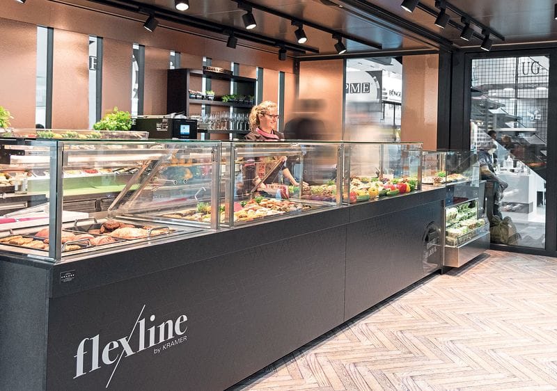 Flexible Warenpräsentation bedeutet, sich am tageszeitenabhängigen Geschäft zu orientieren und die Theken den Bedürfnissen der jeweiligen Phase anzupassen. Dies schafft beispielsweise die innovative Thekengeneration flexline von Kramer Ladenbau, Umkirch/Freiburg. Getreu ihrem Namen überzeugt die gesamte flexline-Serie durch Flexibilität auf allen Ebenen. Von Bedienung auf SB, von heiß auf kalt, vom Frühstück bis zum After-Work-Event. Die Anpassung ans tageszeitenabhängige Geschäft auf kleinster Fläche erfolgt damit schneller und unkomplizierter denn je, so der Ladenbauspezialist. Obendrein garantiert die Thekenserie dank ihrer geschlossenen, glatten Oberflächen eine einfache Reinigung.