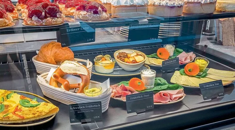 Geschäftsführer Max Häfele: „Wer bei uns einen Fleischkäs-Weck kauft, zahlt meist weniger als 2,50 Euro – verkauft wird dabei nach Gewicht, und 100 Gramm Fleischkäs kosten 1,49 Euro. Dabei verlangen Supermärkte und Fastfood-Filialisten für vergleichbare Produkte oft wesentlich mehr.“ Der Plan ist, dass mit dem Imbiss und dem „ESszimmer“ eine erhöhte Wertschöpfung realisiert wird. Und dieser Plan scheint aufzugehen: In der vormaligen Häfele-Filiale erreichte der Imbiss schon einen Umsatzanteil von 40 Prozent, jetzt hat dieser Anteil die 50-Prozent-Marke überschritten. Dieser hohe Anteil an Metzger-Gastronomie war geplant, und schafft doch neue Herausforderungen. Denn: Wo aus Kunden Gäste werden, muss auch ein viel größerer Teil der Speisen mit 19 Prozent Mehrwertsteuer belastet werden. Die korrekte Frage jeder Verkaufskraft an der Imbisstheke heißt dazu: „Möchten Sie es in einer Serviette oder auf dem Teller“ – wer jetzt Teller sagt, gibt das Signal für die 19-Prozent-Taste.