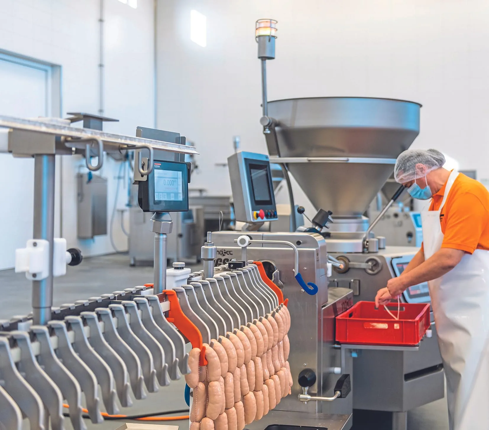 Durch die optimale Synchronisation der einzelnen Komponenten mit automatischer Programmumschaltung ist die Gesamtlinie einfach und intuitiv zu bedienen. Bei fehlendem Bindfaden oder Darm schaltet die Linie automatisch ab und Fehlproduktionen werden verhindert. Dadurch wird eine hohe effektive Produktionsleistung von bis zu 280 Portionen pro Minute erreicht.