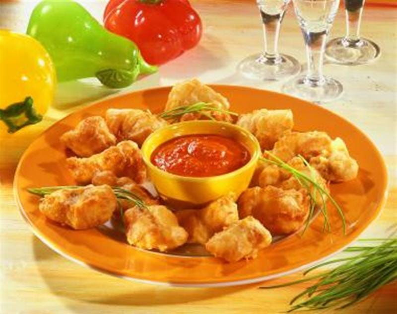 Machen Sie Ihre Kunden auf Ihren hausgemachten Snack aufmerksam und präsentieren Sie die gebackenen Hähnchenscheiben auf der Theke. Diese schmecken warm oder kalt gut, die leckere Soße tut ihr Übriges. Das Fingerfood wird besonders Ihre jüngeren Kunden überzeugen. Probieren kostet nichts!