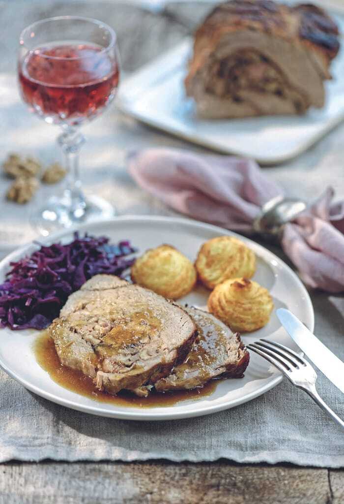 Der gefüllte Kalbsbraten ist ein richtiger Festtagsbraten. Herzoginnenkartoffeln oder selbst gemachte Eierspätzle nehmen die leckere Soße besonders gut auf. - © KDK/Deutsches Kalbfleisch/Merle Weideman