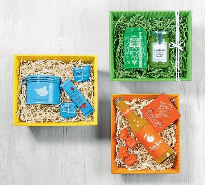 Fertig konfektionierte Geschenkkörbe in frischen Frühlings­farben versprechen Zusatzumsätze. Schumacher Packaging - © Schumacher Packaging