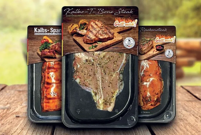 Bahlmanns Kalbs-Rückensteaks werden zum Beispiel in der Kalibrierung von 180 g angeboten, dabei sind Gebindeeinheiten in Größen wie etwa sechsmal ein Stück Skinverpackt pro Karton erhältlich. So bleibt die Frische und weitere Reifung jederzeit garantiert.