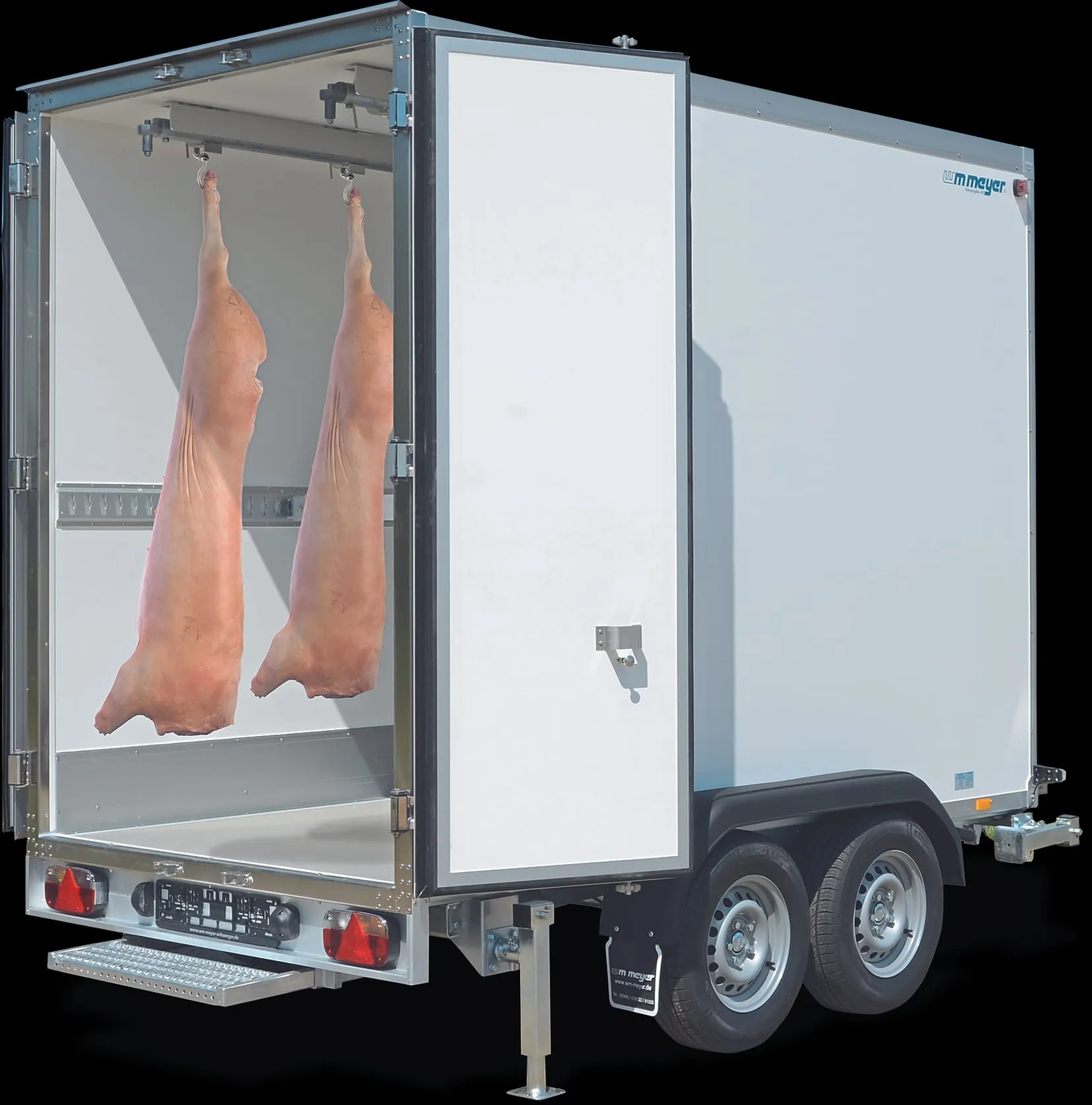 Gegen Aufpreis lässt sich der AZK mit zwei Rohrbahnen (für den Transport kompletter Schweinehälften) ausrüsten. Dann wird der Anhänger mit einer serienmäßigen Innenhöhe von 2,20 m ausgeliefert.