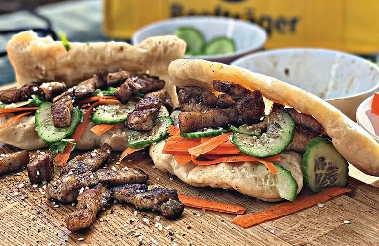 Konkurrenz für den klassischen Hamburger. Gua bao heißen die mit Gemüse und Schweinebauch gefüllten Hefebrötchen, die wohl ursprünglich aus China stammen, aber auch ein beliebtes Straßenessen in Singapur, Malaysia, Taiwan und Japan sind.