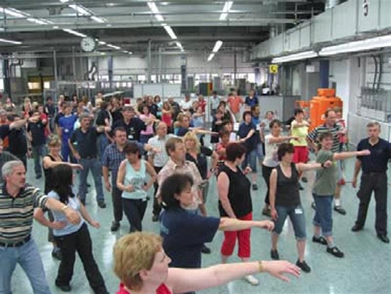 Der Schweizer Messerhersteller Victorinox nennt das „Balance Time“. Dreimal am Tag machen die Mitarbeiter eine Gymnastikpause von jeweils fünf Minuten. Unter Anleitung macht jede Abteilung ihre Ausgleichsübungen - 15 Minuten Arbeitszeit, die sehr gut investiert sind. Seit Einführung des Programms konnten bei Victorinox die krankheitsbedingten Ausfallzeiten um mehr als ein Drittel gesenkt werden.