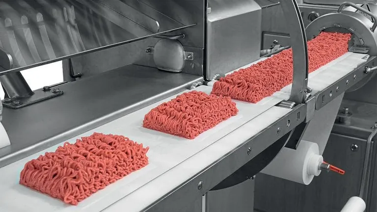 Die KS Hackfleischlinie ermög-licht die Portionierung in definierten Portionsgrößen von 100 g bis 1.000 g mit individuellem Querschnitt in einem oder mehreren parallelen Strängen.