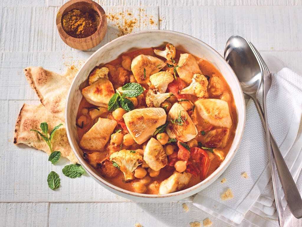 Bei frostigen Temperaturen ist ein warmes Gericht wie Hähnchencurry genau das richtige. Weil viele Menschen nach dem Jahreswechsel aber etwas weniger gehaltvolle Menüs bevorzugen, kommt die Kombi aus Hähnchenfiletwürfel, Blumenkohl, Kichererbsen und Curry gerade recht.