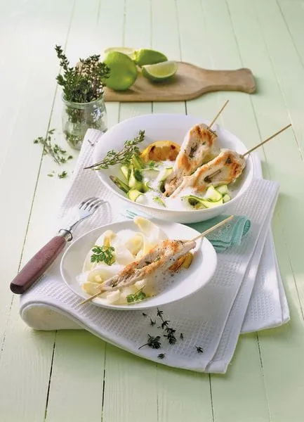 Hähnchenspieß mit Spargelstreifen