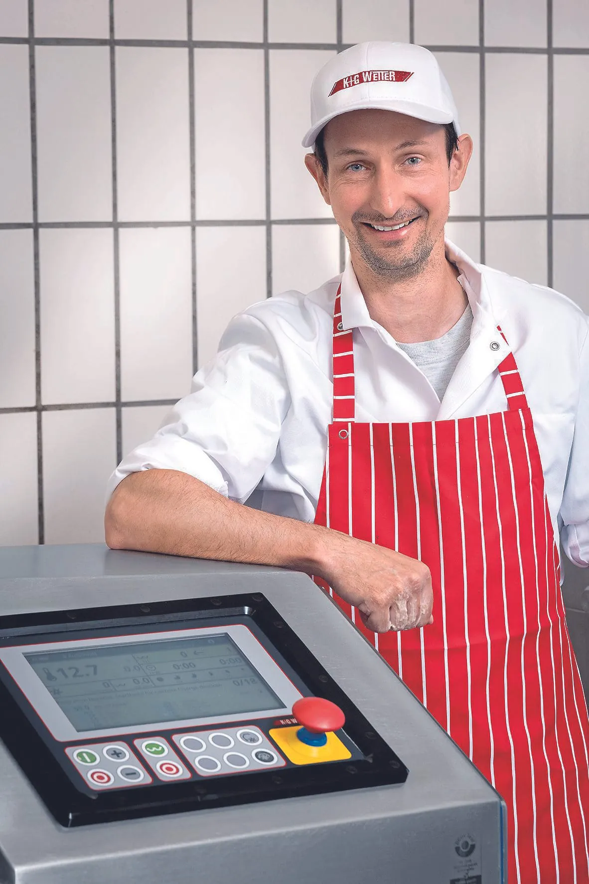 Die Zubereitung der traditionellen Wurstspezialitäten hat Thomas Landes als erfahrener Metzgermeister natürlich im Kopf. Trotzdem spielte die Rezepturverwaltungssoftware CutControl von K+G Wetter eine ganz entscheidende Rolle bei der Wahl des neuen Kutters. Das Prinzip: In CutControl werden Rezepturen detailliert hinterlegt, direkt am großen und übersichtlichen Touch-Display am Kutter angezeigt und Schritt für Schritt abgearbeitet. Zudem übernimmt das Programm die exakte Umrechnung der Zutatenmengen für jede Chargengröße.