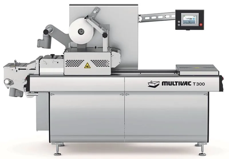 Der vollautomatische Traysealer T 300 eignet sich zum effizienten Verpacken verschiedenster Produkte auf kleinstem Raum. Er kann mehrspurig ausgelegt und mit verschiedenen Abführsystemen kombiniert werden. Multivac