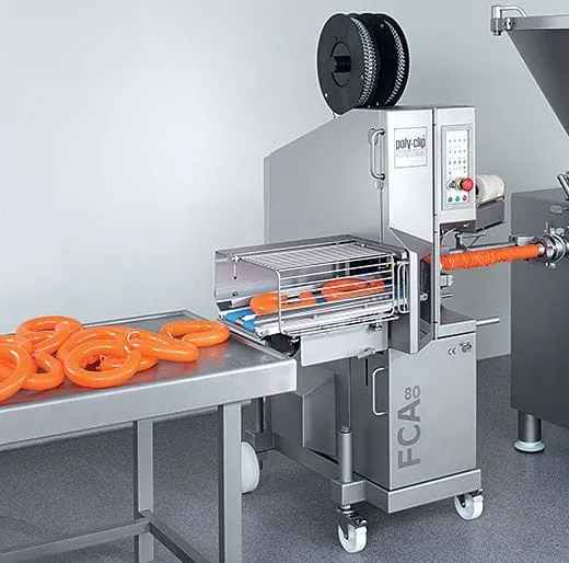Den „sauberen Einstieg“ in die FCA-Reihe erfüllt der FCA 80 mit gleichmäßiger Plissierung des Darmes und kontinuierlich brätfreien Wurstzipfeln durch den Spreizverdränger. Durch den linearen Clipverschluss wird ein symmetrischer Clip gewährleistet. Die Überspreizung für luftfreies Lockerfüllen bis 100 mm Gesamtspreizung ist beim neuen FCA 80 bereits in der Standardversion integriert. Daher ist der neue Doppel-Clip-Automat auch ideal für Formprodukte geeignet. Eine Variante des FCA 80 speziell für Ringwurst mit Doppelförderband und angepasster Frontklappe rundet das Anwendungsspektrum ab.