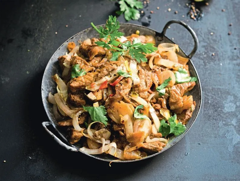 Das Buch „Backe, Brust und Bauch“ – beim Kochbuchwettbewerb 2018 der GAD (Gastronomische Akademie Deutschlands) mit der Silbermedaille ausgezeichnet – zeigt, wie bunt und lecker die Küche mit den „Second Cuts“ wird. Ein Rezept daraus ist „Igors Curry-Schwein mit Ingwer und Chicorée“ – ideal für die Heiße Theke.