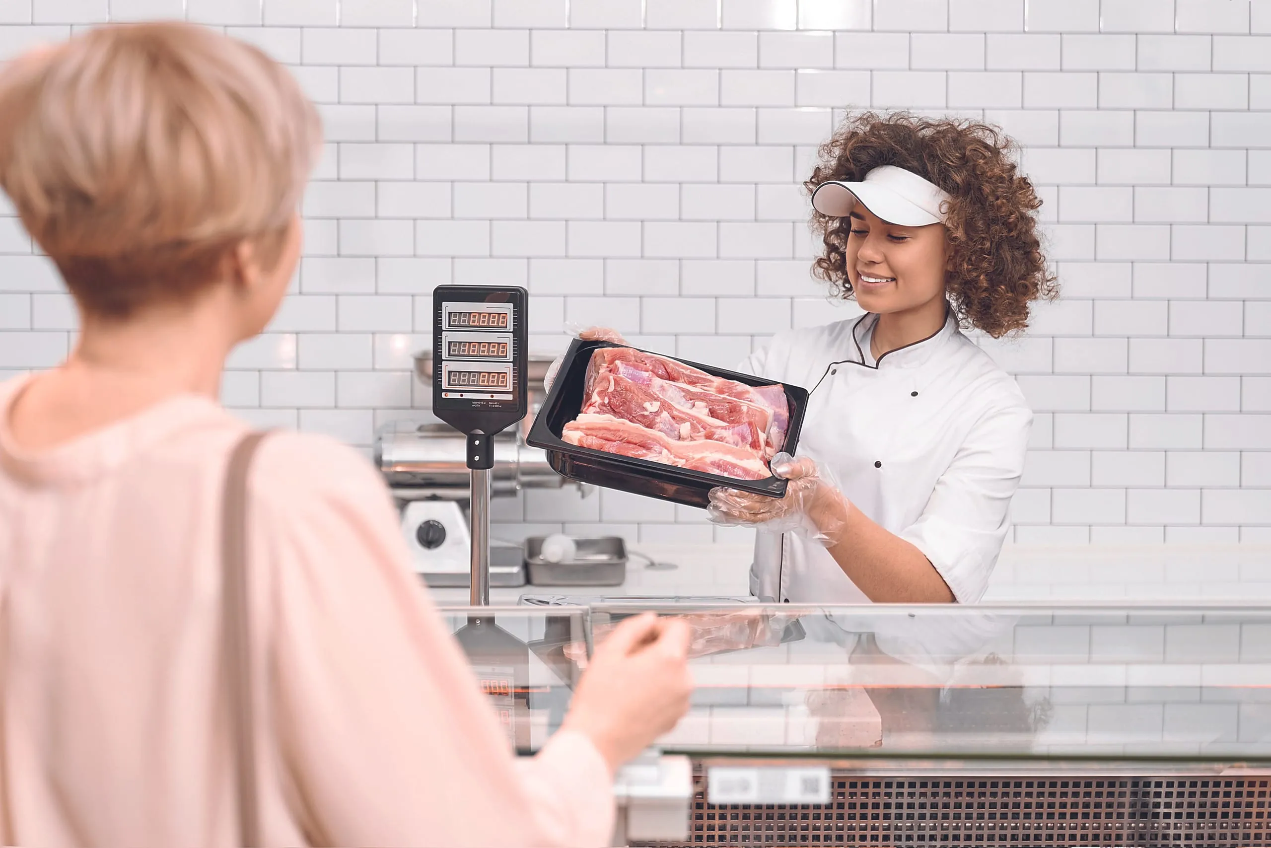 Die ordert zunächst eine Hähnchenbrust. Eine leichte Aufgabe für die junge Frau. Beim Rumpsteak wird es schwieriger. Wie sieht das noch mal aus? Sie fragt ihre Kollegin. Auch mit Bratenstücken kennt sie sich nicht aus und fragt erneut die Kollegin. Die schaut hektisch in die Theke. „Ich hole eins von hinten“, erklärt sie und geht. Kommentarlos lässt sie ihre Kundin stehen, die bedient ist und bezahlt. Nun widmet sich die erfahrene Verkäuferin Gitta. Die braucht noch 100 g Rinderhack. „100 g?“, wiederholt die Expertin laut mit ärgerlichem Unterton. Nicken. „Das sollen Sie haben“, bestätigt sie schrill. Ihr Gesicht ist rot, sie schwitzt. Zwei Scheiben gekochten Schinken. „Selbstverständlich! Gerne!“, ruft sie aufgekratzt. Gitta fragt nach Knochen und Suppenfleisch. „Hole ich Ihnen. Sofort!“, verspricht die Fachfrau laut und flüchtet in den Nebenraum.