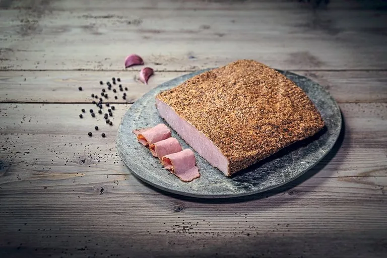 Successful butchers offer a well-balanced mixture of classic and regional ham specialties as well as international meat products such as pastrami. Pastrami was originally brought to the USA by Eastern European immigrants, where it began its triumphal advance as a sandwich topping. The distinctive flavors of pepper, paprika, garlic and coriander make this type of beef an interesting change on a platter of cold cuts.