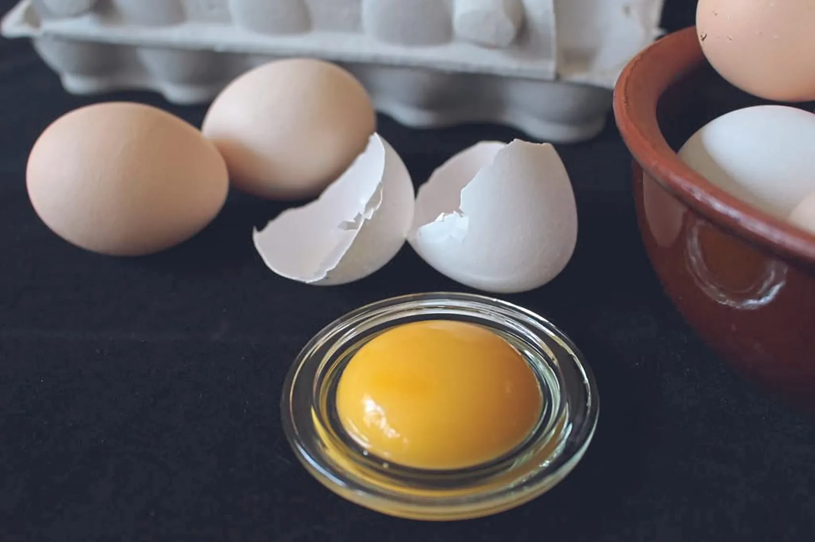 Beim Aufschlagen frischer Eier ist der Dotter hoch gewölbt. Je flacher der Dotter, umso älter ist das Ei. Mit dem Alter wird die Membran des Dotters dünner. Frische Eier lassen sich einfach trennen, bei älteren fließen Eiklar und Eigelb beim Aufschlagen zusammen. Auch ein Schwimmtest zeigt die Frische eines Hühnereies an. Dazu das Ei in Wasser legen. Bleibt es am Boden liegen, ist es frisch. Mit dem Alter vergrößert sich die Luftblase und das Ei steigt auf.