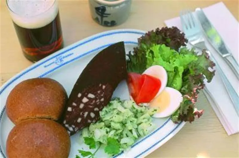 Ein weiteres rheinisches Gericht, bei dem Blutwurst eine Hauptrolle spielt, ist „Himmel und Erde“. Die Traditionsspeise trägt diesen Namen, da sie aus Äpfeln, die an Bäumen in den Himmel wachsen, und Kartoffeln, die aus der Erde kommen, zubereitet wird. Die Äpfel werden zu Mus, die Kartoffeln zu Püree verarbeitet und miteinander vermengt. Dann wird die warme Kartoffel-Apfel-Masse auf einem Teller angerichtet und gebratene Blutwurst- und Leberwurstscheiben werden mit gedünsteten Zwiebeln darübergegeben. Eine moderne Variante, die Sie Ihren Kunden als schnellen Mittagssnack aus der Heißen Theke anbieten können, ist die Himmel-und-Erde-Pizza. Dazu bereiten Sie einen Pizzateig vor, den Sie dünn auf einem Backblech ausrollen und mit einer Gabel einstechen. In der Zwischenzeit Kartoffeln mit Schale gar kochen, pellen und in Scheiben schneiden. Aus ganzen Äpfeln das Kerngehäuse entfernen und die Äpfel in dünne Ringe schneiden. Schalotten schälen und fein würfeln. Frische, ungebrühte Blutwurst in Scheiben schneiden und dann zusammen mit den Zwiebeln anbraten. Mit Salz, weißem Pfeffer aus der Mühle und in feine Streifen geschnittenem frischen Majoran abschmecken. Den Pizzateig nun zuerst mit den Kartoffeln, dann mit der Blutwurst und zuletzt mit den Apfelringen belegen. Diese mit Zucker bestreuen und die Pizza bei mittlerer Hitze 15 bis 20 Minuten backen bis die Äpfel goldbraun sind und der Teig knusprig ist.