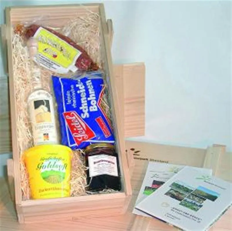 Westlich von Köln und Bonn liegt der Naturpark Rheinland. Mehr als die Hälfte des über 1.000 Quadratkilometer großen Naherholungsgebietes wird landwirtschaftlich bebaut. Die dort erzeugten Produkte werden vom Naturpark in unterschiedlichen Aktionen beworben, zum Beispiel als „Rheinisches Spezialitätenpaket“. 200 Pakete mit Produkten aus dem Naturpark wurden letzten Herbst von Hand gepackt und verkauft. Dabei reichte die Palette von Marmelade über Obstbrände bis hin zur Wurst. Für dieses Jahr ist ein neues Spezialitätenpaket für die Weihnachtszeit geplant. Dabei ist die Zusammensetzung an Produkten aber nicht festgelegt. Neue Produkte von anderen regionalen Erzeugern und gern auch aus dem Fleischer-Fachgeschäft sind herzlich willkommen. Voraussetzung ist allerdings, dass die Produkte von Tieren aus dem Naturpark Rheinland stammen.