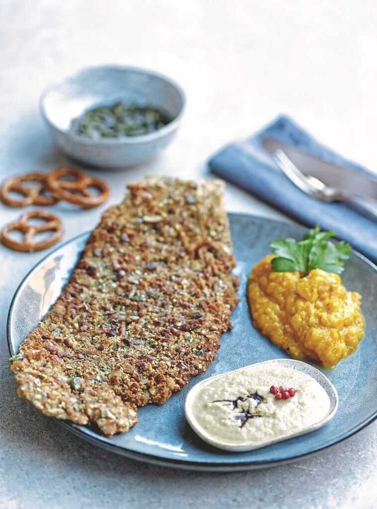 Kürbisberge am Wegrand, Kürbis im Supermarkt – es ist unübersehbar: Die Zeit für Kürbis hat begonnen. Und damit auch Zeit für ein saisonales Gericht. Das knusprige Kalbsschnitzel trifft auf dreierlei vom Herbstgemüse – darunter ein herzhafter Kürbis-Sellerie-Stampf als Beilage.