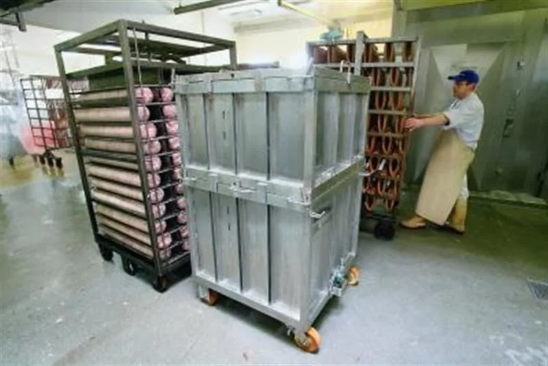 Bei der Munzert Fleischwaren GmbH bringen große Kochpressen von Eberhardt den Kochschinken in Form.
