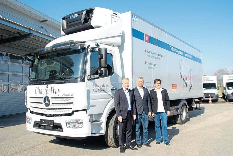 Der Vermieter CharterWay bietet ein erstes Kühlfahrzeug mit elektrifizierter Kühlmaschine in seinem Fuhrpark an. Kunden können die Lösung bei CharterWay mieten und über einen Zeitraum von maximal zwei Monaten in ihrem Fuhrpark einsetzen, um Funktion und Praxistauglichkeit des kompletten Systems zu erproben.