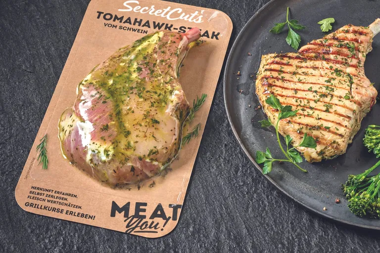 FlatSkin, die mit Folienpartner Wentus entwickelte Skin-Lösung, besteht ebenfalls aus hohem Karton- und geringem Kunststoffanteil und verpackt Fleischprodukte sicher und attraktiv.